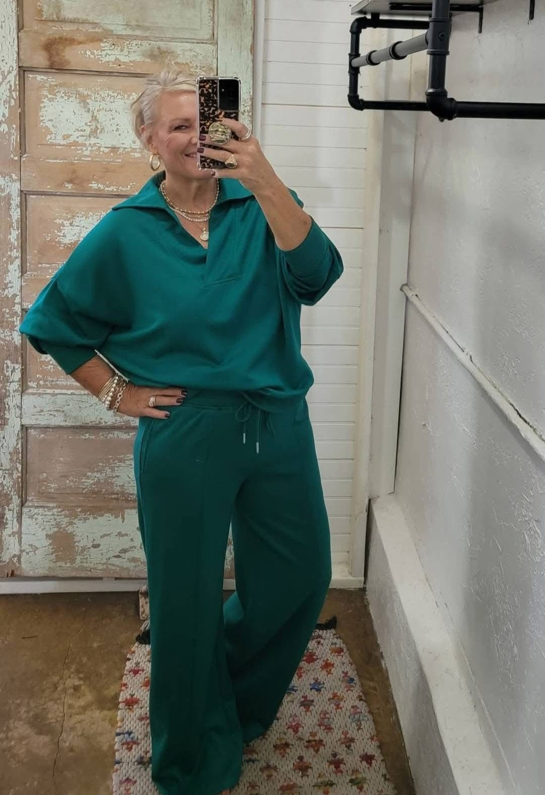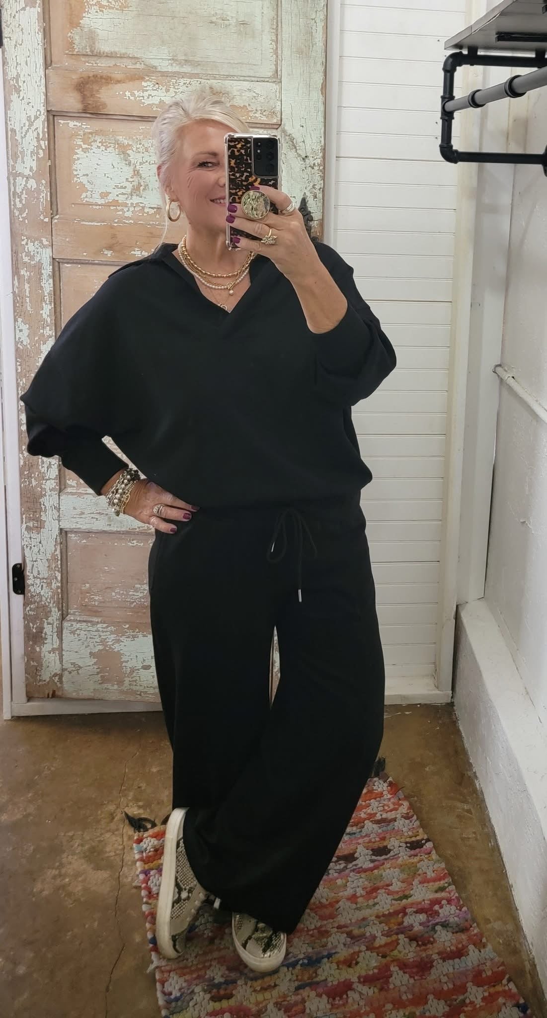 Add a bit of fun to your brunch look with this soft knit set. Mix and match the short-sleeve top and collared bottom for a versatile outfit. The zipper at the neckline adds a touch of quirkiness to this playful set. (Brunch not included.)