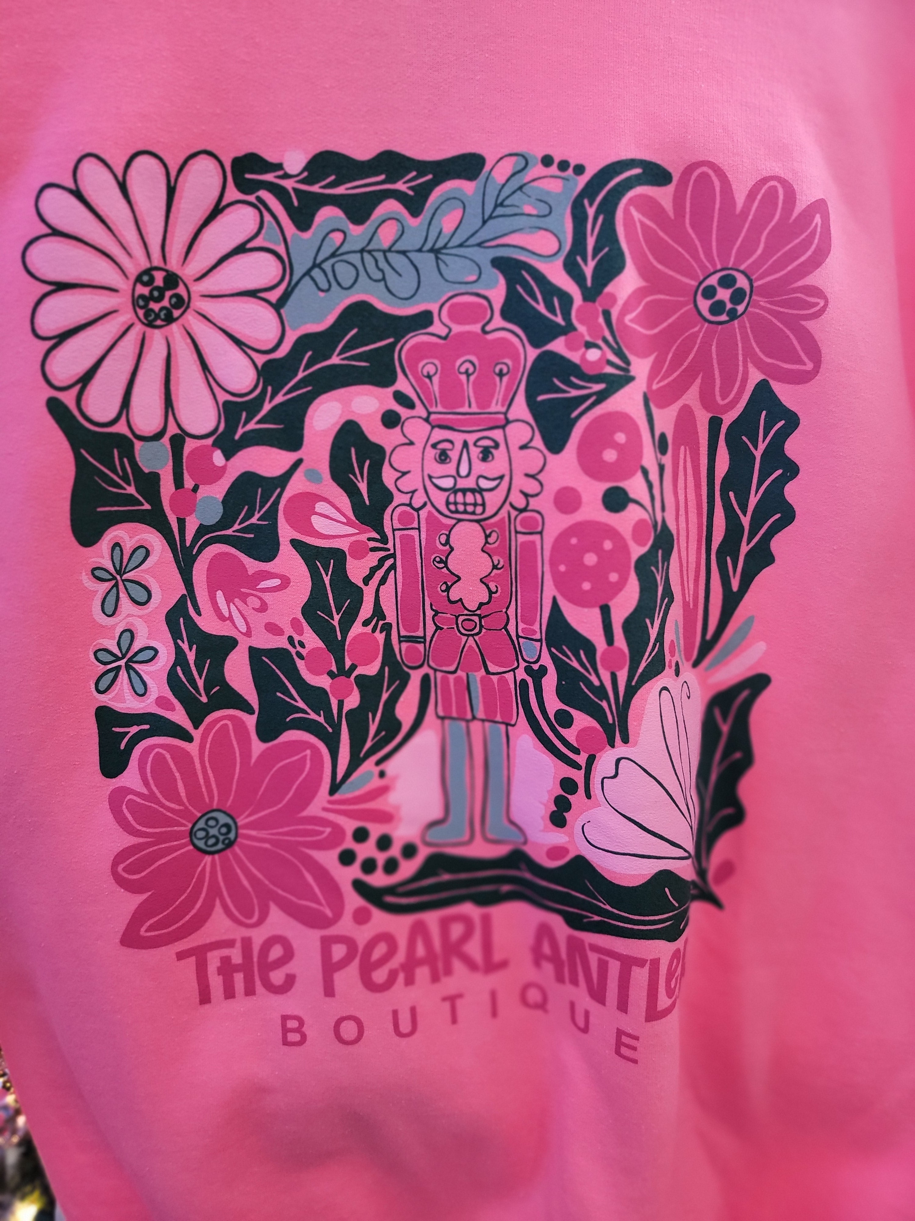 Add a festive twist to your wardrobe with this Floral Nutcracker Sweatshirt! The fun Christmas design is sure to bring some holiday cheer, while the hot pink color adds a playful touch. Complete with a comfortable crew neck, it's the perfect choice for a cozy and stylish winter look.